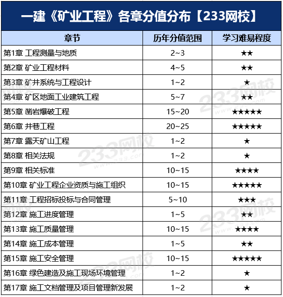 一建矿业全书共17章,但分值分布极不均衡。“五章定乾坤” 是这门课的最大规律!