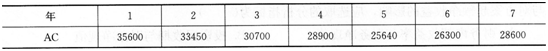 35、 某设备物理寿命为7年,各年的报考年平均成本AC如表,则其经济寿命为( )年。