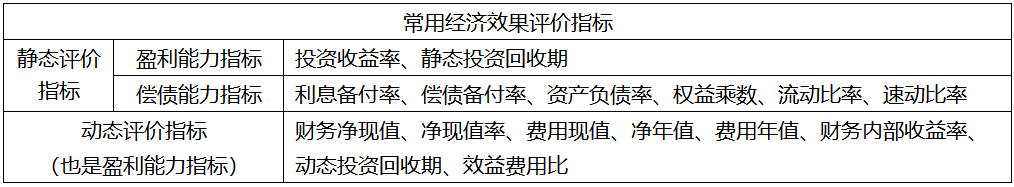 动态评价指标(也是盈利能力指标):财务净现值、净现值率、费用现值、净年值、费用年值、财务内部收益率、动态投资回收期、效益费用比。