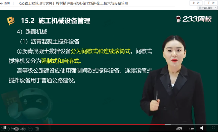 沥青混凝土搅拌设备:高等级公路建设应使用强制间歇式搅拌设备,连续滚筒式搅拌设备用于普通公路建设。