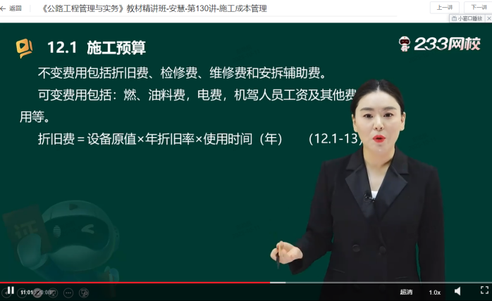 机械费的计算:(1)变费用包括折旧费、检修费、维护费和安拆辅助费。