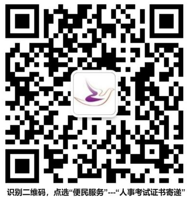 一、邮政EMS(免费,2-3天送达)。考生本人用微信搜索“政驿”公众号,点击下方“便民服务”菜单选择“人事考试证书邮寄”。邮政客服电话:周经理,17751970138。