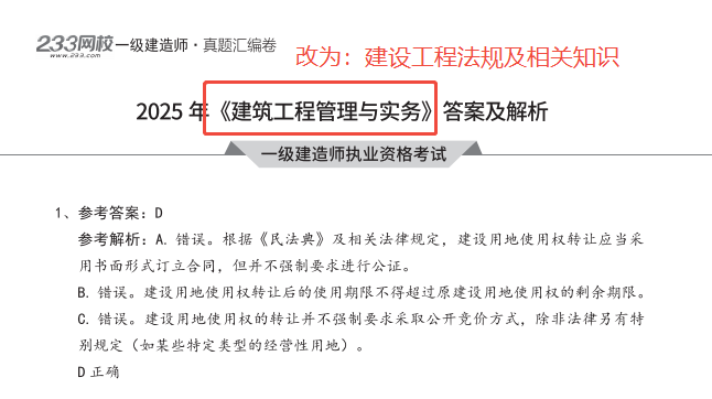 2026年一级建造师《建设工程法规及相关知识》真题汇编勘误