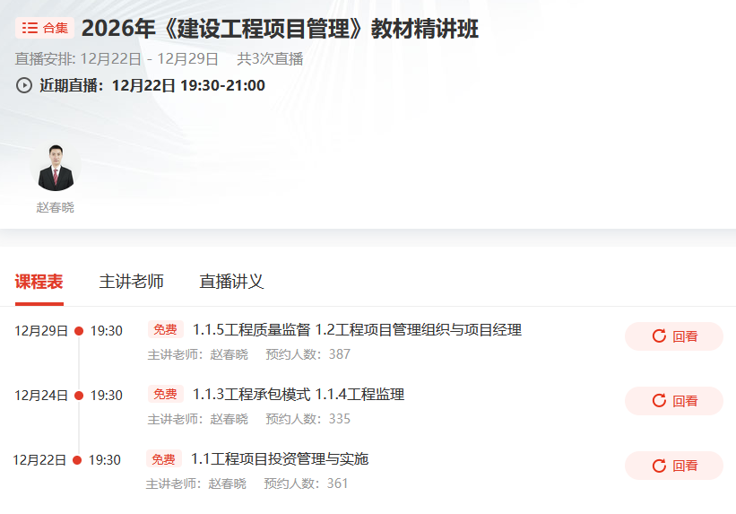 233网校2026年一级建造师《项目管理》教材精讲课陆续更新!由赵春晓老师主讲,现免费开放部分课程,为你打通管理的任督二脉!