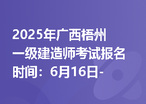 从广西人事考试网发布的《关于做好2025年度一级建造师职业资格考试广西考区考务工作的通知》得知,2025年广西一级建造师考试报名时间已确定为6月16日8:00至6月26日17:00。点击进入>>2025年一级建造师考试报名入口报考流程根据《人力资源社会保障部办公厅关于印发〈专业技术人员职业资格考试考务工作规程〉的通知》(人社厅发〔2021〕18号)要求,报考人员原则上应在工作地或居住地报名参加考试。(一)网上填报信息。网上填报时间:2025年6月16日8:00至6月26日17:00。查看更多>