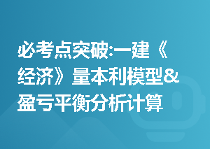 一建经济章节题练习:3.1 盈亏平衡分析插入模块1、某技术方案的设计生产能力为10万件,有两个可实施方案甲和乙,其盈亏平衡点产量分别为1万件和9万件,不考虑其他因素,下列说法中正确的是()。A. 方案甲的抗风险能力大B. 方案乙的抗风险能力大C. 风险相同D. 方案甲产品降价后的风险大查看答案参考答案:A参考解析:盈亏平衡点反映了技术方案对市场变化的适应能力和抗风险能力。一般盈亏平衡点生产能力利用率越低,表明方案适应市场需求变化的能力越大, 抗风险能力越强。2、通常认为盈亏平衡点生产能力利用率B查看更多>
