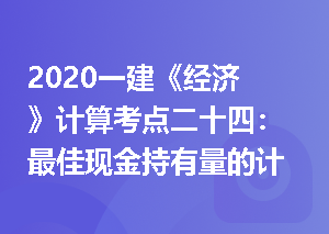 在一级建造师《工程经济》考试中,计算考点一直占据很重要的位置,考生们不仅要理解公式概念,还要掌握其计算应用。以2019年的考试为例,计算考点的题目总共有24道,其中单选22道,多选2道,纯计算考题19道,考核计算公式1道,考核公式概念3道,总分26分。为帮助考生们系统掌握计算考点相关知识,233网校以一建《工程经济》教材为基础,结合近10年试题考核趋势,归纳编写了计算考点系列专题。本文的计算考点源于第二章工程财务系列专题,持续更新,记得添加收藏~计算考点二十四:最佳现金持有量的计算【考核指数:★查看更多>