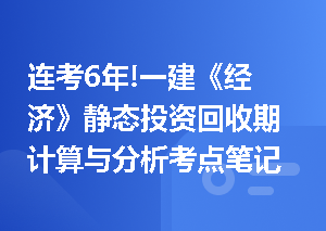 1Z101024 投资回收期分析在一级建造师《工程经济》考试中,“投资回收期分析”是历年考试的常考点,这部分内容要求考生不仅会分析,还得会计算。本讲课程中,233网校邱磊老师借助经典例题,通过由浅入深地讲解,帮助考生们快速理解并掌握这部分知识点。一、投资回收期的概念投资回收期也称投资返本期,是反映技术方案投资回收能力的重要指标,分为静态投资回收期和动态投资回收期,通常只进行技术方案静态投资回收期(不考虑资金时间价值)的计算分析。二、重要考点总结考点一、静态投资回收期的计算应用【2018/2019查看更多>