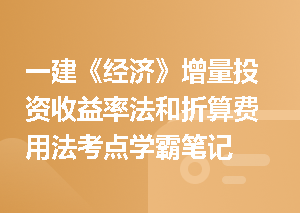 “1Z101070  新技术、新工艺和新材料应用方案的技术经济分析”考点学霸笔记在一级建造师《工程经济》考试中,“新技术、新工艺和新材料应用方案的技术经济分析”是历年考试的常考点,这部分内容主要要求考生掌握“增量投资收益率法”和“折算费用法”的计算。本讲课程中,233网校邱磊老师借助经典例题,通过由浅入深地讲解,帮助考生们快速理解并掌握这部分内容的相关考点。一、本节考情分析  二、本节内容对应精讲课程内容时长新技术、新工艺和新材料应用方案的技术经济分析31:58三、查看更多>
