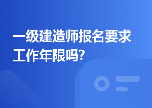 2021年一级建造师考试报名于7月5日正式开始( 各省报名通知),每年这时候开始很多考生问关于一级建造师报考条件相关问题,今天为大家解答:一级建造师报名要求工作年限吗?报考一级建造师需要满足相应的工作年限,学历不同,工作年限要求不同,且需要同时满足工作经验与施工工作年限才可以报考,具体要求如下:【报名照片一键处理|报考条件一键查询|报考问题咨询】凡中华人民共和国公民,遵纪守法并具备以下条件之一者,可以申请报考一建。1、取得工程类或工程经济类大学专科学历,工作满6年,其中从事建设工程项目查看更多>