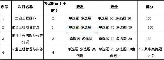 一级建造师执业资格考试设《建设工程经济》、《建设工程项目管理》、《建设工程法规及相关知识》、《专业工程管理与实务》这4个科目。其中《专业工程管理与实务》科目设置10个专业类别:建筑工程、公路工程、铁路工程、民航机场工程、港口与航道工程、水利水电工程、市政公用工程、通信与广电工程、矿业工程、机电工程。