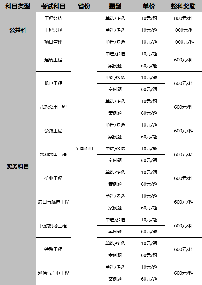 3、真题征集奖励:单选、多选10元/题,案例60元/题,最高1000元/每科