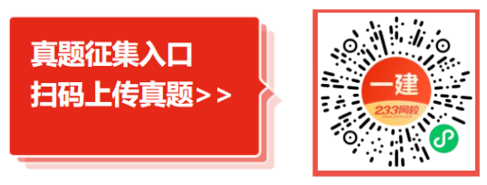 为了助力广大一建考生精准估分与核对答案,233网校隆重推出2025年一级建造师【考生回忆版真题征集活动】,我们承诺,每道被采纳的真题将给予10~60元不等的奖励,奖励按实际题量结算,确保每位参与者的努力都能得到回报。更令人振奋的是,单科最高奖励可达1000元现金!