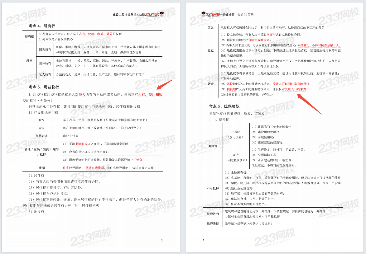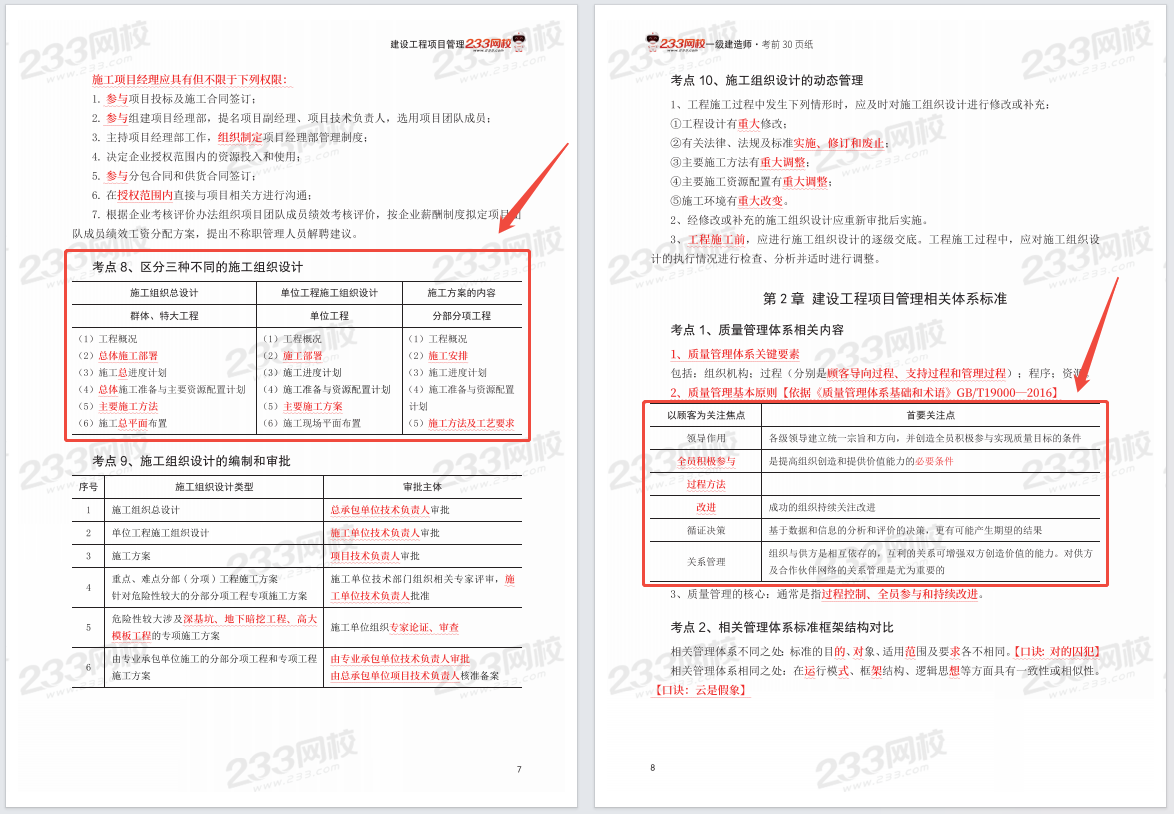 233网校2025年一级建造师《考前30页纸》内容均以图表结合的方式整理归纳了各章知识点,并将考点进行了分类和总结,目的是方便考生对比记忆、区分关联各类易混考点、同类知识点等,以此加深理解,掌握更牢固。