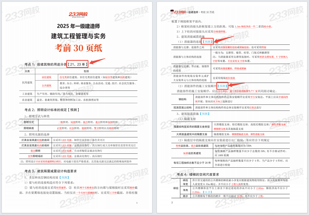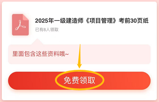 为了帮你高效利用黄金冲刺期,我们专为2025年一建考生打造《考前30页纸》——全书核心考点浓缩、高频易错点标注、记忆口诀总结,页页是干货,助你快速提分!
