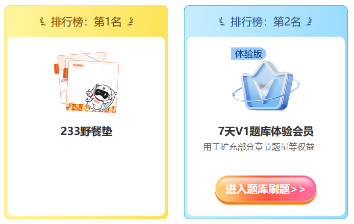 ✅ 完成模考:抽野餐垫、题库会员、考证币、资料下载币等实用福利!