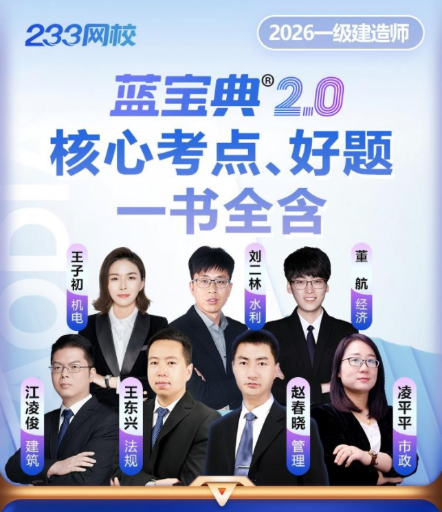 注意:购买233网校一建签约特训班/智学魔方班,均会赠送2026版一建《蓝宝典2.0》等教辅资料,买课送书更划算哟~进入了解>>