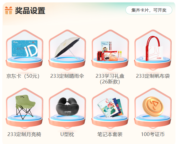 备考之路漫长且艰辛,但你从不孤单!233网校用专业课程、题库、贴心服务为你保驾护航,更有这场充满仪式感的集卡活动,让学习不再枯燥,让努力被看见!