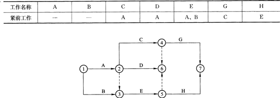 27、 根据表中给定的逻辑关系所绘制的双代号网络计划如下图所示,其作图错误的是( )。