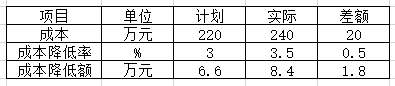 43、某项目施工成本数据如下表,根据差额计算法,成本降低率提高对成本降低额的影响程度为()万元。