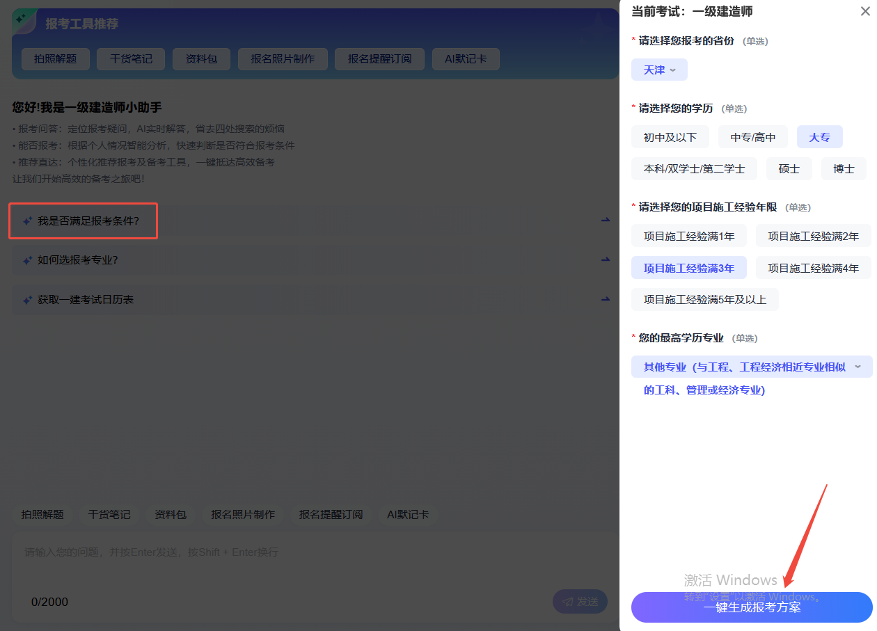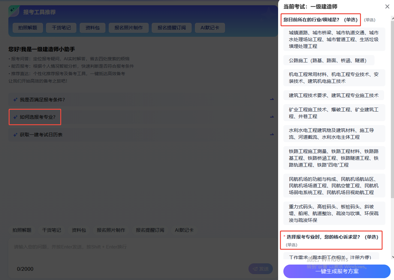 立即体验一建AI报考问答,迈出通往证书的第一步!