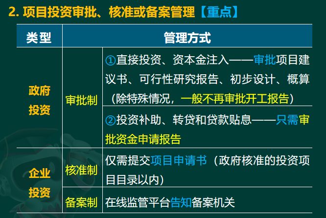 2.项目投资审批、核准或备案管理[重点]