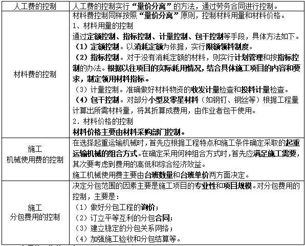 成本控制的方法考点解析