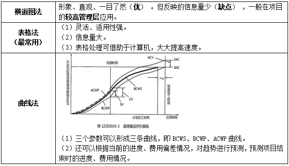 常用的有横道图法、表格法和曲线法(横曲表)。