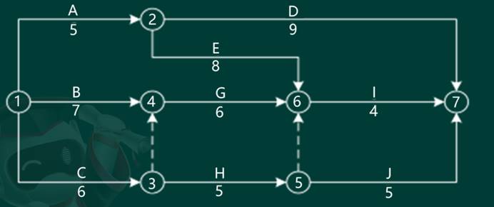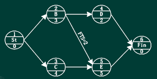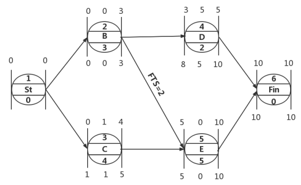 答察解析: 根据自由时差公式,FFij=ESjk-ESij-Dij=6-0-6=0。