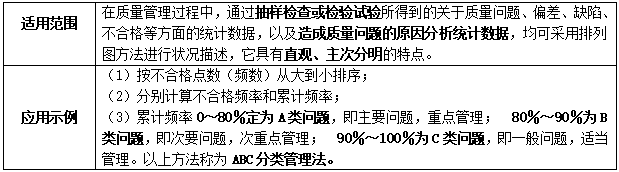 答察解析: 本题考核的是因果分析图法的原理。因果分析图法的基本原理是对每一个质量特性或问题,逐层深入排查可能原因,然后确定其中最主要原因。在质量管理过程,通过抽样检查或检验试验所得到的质量问题、偏差、缺陷、不合格等统计数据,以及造成质量问题的原因分析统计数据,均可采用排列图方法进行状况描述。直方图法的主要用途是掌握质量能力状态,观察分析生产过程质量是否处于正常、稳定和受控状态以及质量水平是否保持在公差允许的范围内。