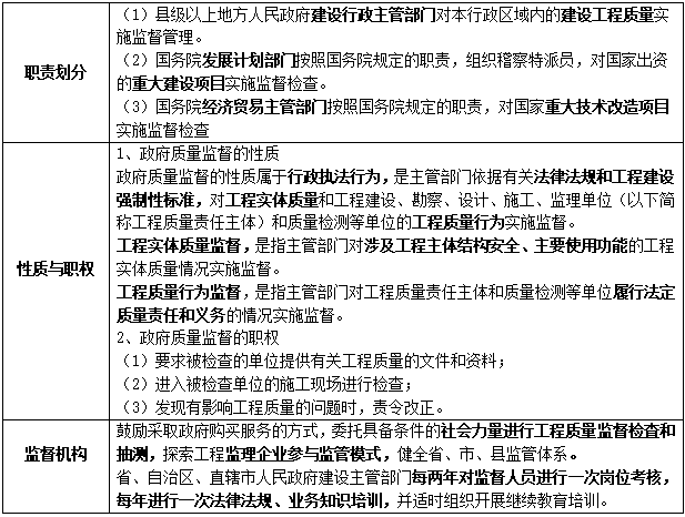 政府对工程项目质量监督的内容与实施考点解析