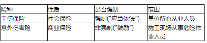 工伤保险是强制性要求,意外伤害保险鼓励办理,不是强制性要求