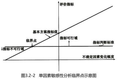 ①指不确定因素的变化极限值,即不确定因素的变化使方案由可行变为不可行的临界数值