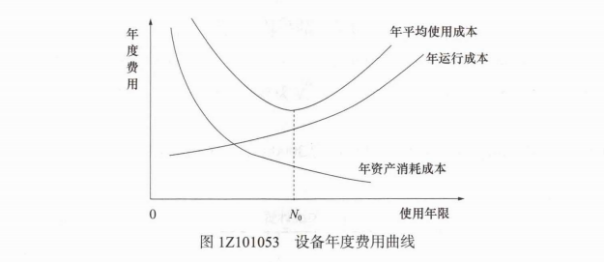 答察解析: 设备经济寿命是从开始使用到其年平均使用成本最小(或年盈利最高)的使用年限,即平均年资产消耗成本与平均年运行成本之和最小的年限。