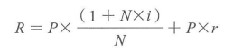 R=Px(1+N×i)÷N + P×r =240×(1+10×8%)÷8+240×3% =61.2万元