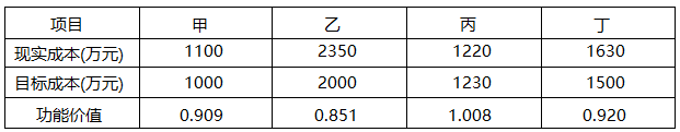 答察解析: 功能评价是找出实现功能的最低费用作为功能的目标成本,以功能目标成本为基准,通过与功能现实成本的比较,求出两者的比值(功能价值)和两者的差异值(改善期望值),然后选择功能价值低、改善期望值大的功能作为价值工程活动的重点对象。