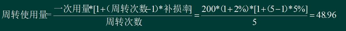 周转使用量=[206+(5-1)×206×5%]÷5=49.44㎡