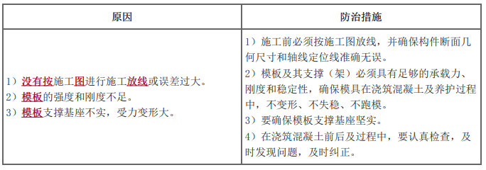 ① 模板表面不光滑、安装质量差,接缝不严、漏浆,模板表面污染未清除。