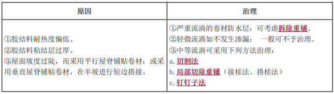 严重流淌:流淌面积占屋面50%以上,大部分流淌距离超过卷材搭接长度。