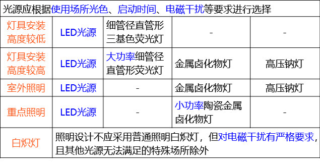 答察解析: A选项:灯具安装高度较低的房间宜采用LED 光源、细管径直管形三基色荧光灯。
