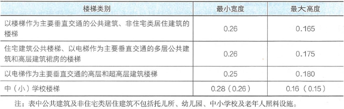 答察解析: 楼梯踏步最小宽度和最大高度(m):