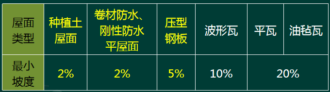 3)女儿墙:与屋顶交接处必须做泛水,高度不小于250mm。