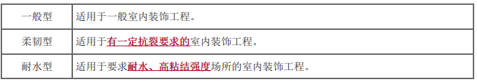 1)建筑腻子的分类按功能,可分为一般找平腻子、 拉毛腻子、弹性腻子、防水腻子等。