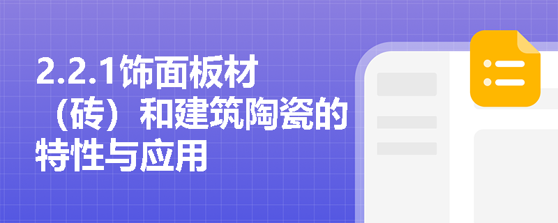包括:陶瓷砖(各类室内、室外、墙面、地面用陶瓷砖,陶瓷板,陶瓷马赛克,防静电陶瓷砖,广场砖等)、建筑琉璃制品、微晶玻璃陶瓷复合砖、陶瓷烧结透水砖、建筑幕墙用陶瓷板等。