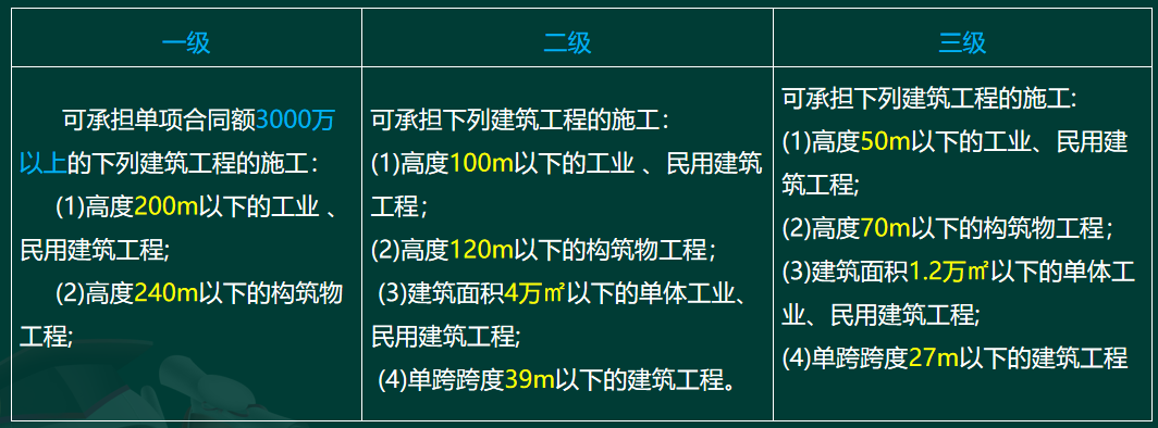 (3)施工总承包资质分为:特级、 一级、二级、三级。