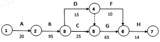 考虑上述所有事件,关键线路为A→B→C→G→H 工期T=25+95+27+60+13=220天