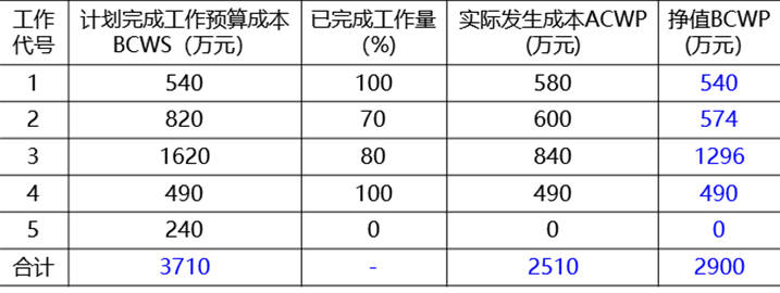 ①成本偏差CV=BCWP-ACWP