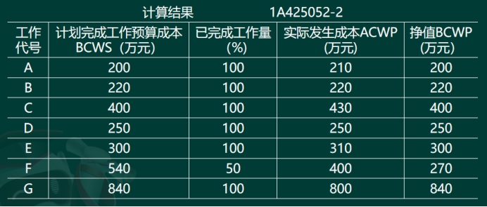 (2) 20周末ACWP为6240万元,BCWS为5340万元。