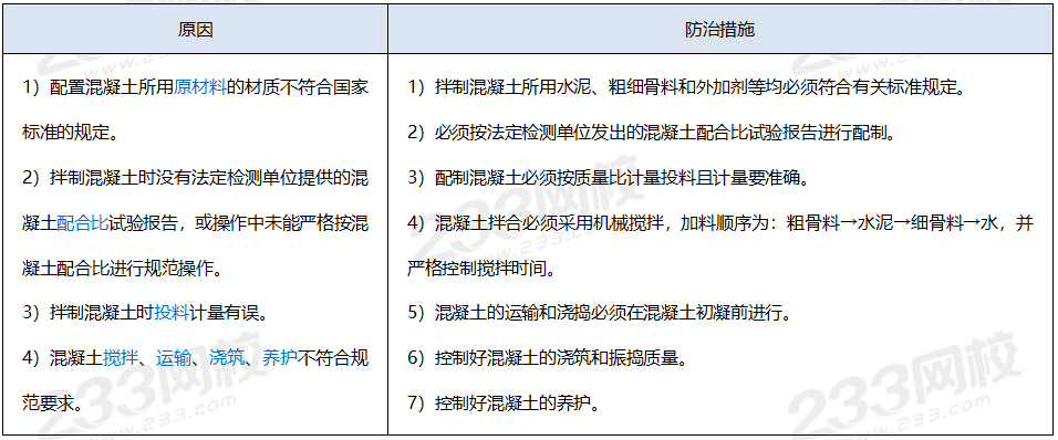 2)混凝土强度等级达不到设计要求