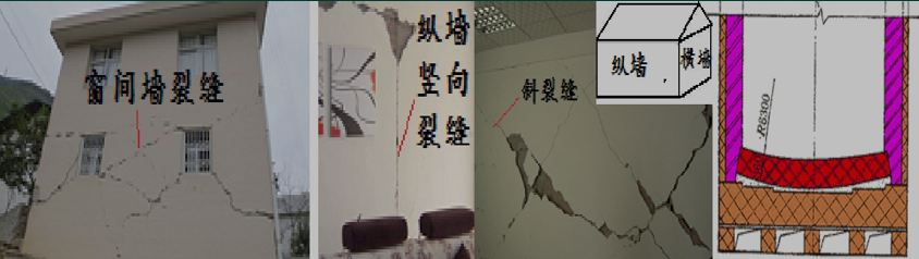 ③ 提高上部结构的刚度,增强墙体抗剪强度。应在基础顶面(±0.000)处及各楼层门窗口上部设置圈梁,减少建筑物端部门窗数量。